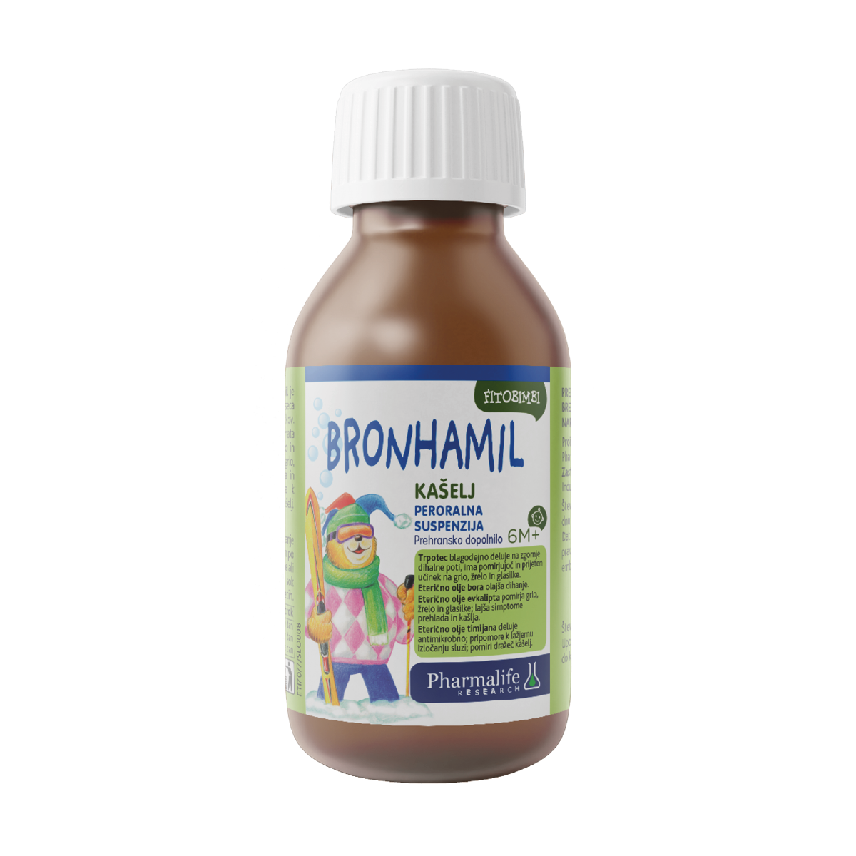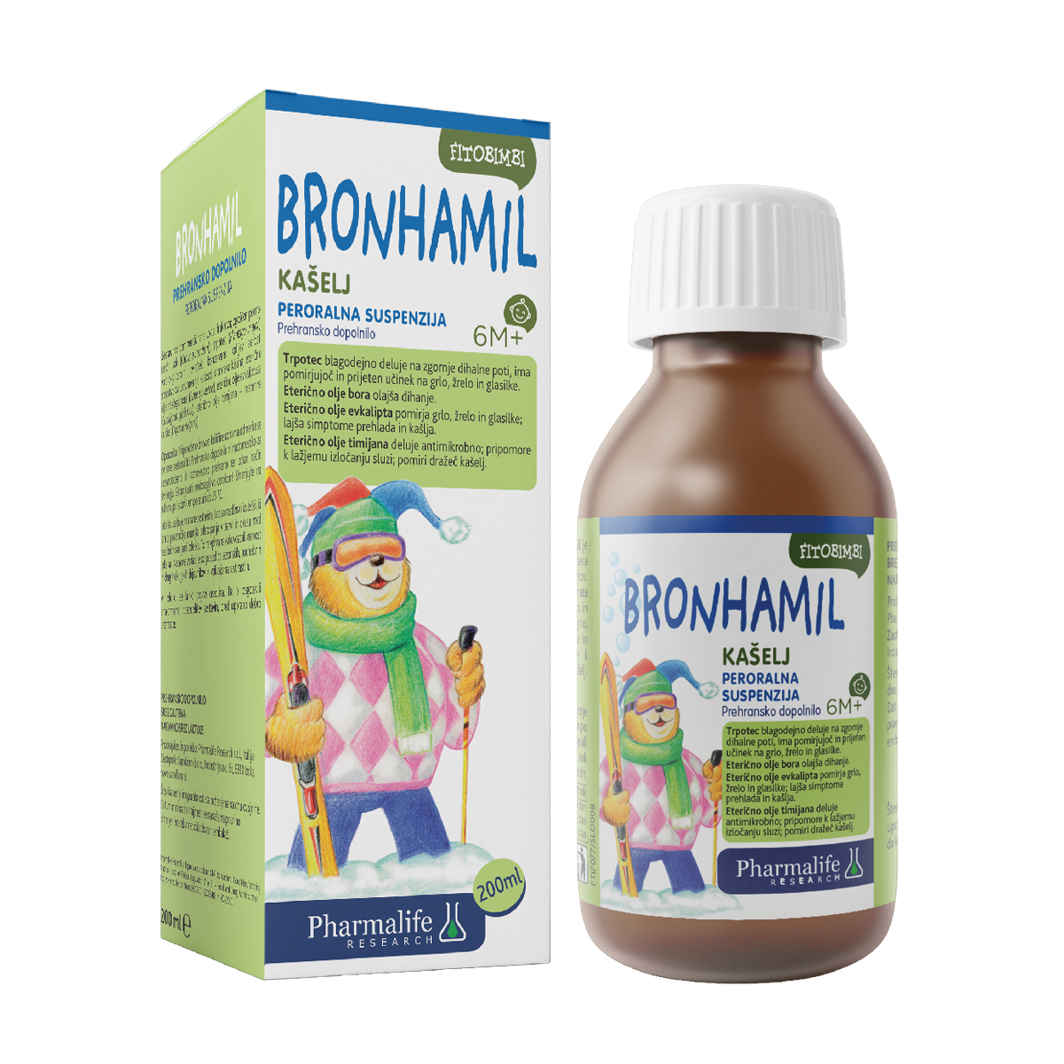 Fitobimbi Bronhamil je namensko razvit za blaženje obeh vrst kašlja, suhega in mokrega. Trpotec vsebuje polisaharidne sluzi, ki imajo ugoden učinek na grlo, žrelo in glasilke, saj na sluznici zgornjih dihalnih poti ustvarijo tanko oblogo in jo zaščitijo pred draženjem ter pomirijo kašelj. Bor, timijan in evkalipt imajo balzamični učinek, redčijo sluz in lajšajo izkašljevanje. Aktivne učinkovine imajo tudi antiseptični učinek. Sinergistična moč vseh rastlinskih izvlečkov blagodejno deluje na zgornje dihalne poti, podpira delovanje respiratornega sistema ter ima pomirjajoč in ugoden učinek na grlo, žrelo in glasilke. Izdelek obenem lajša dihanje pri otroku. Opazovalna študija, opravljena v sklopu ORL oddelka, na 87 otrocih, je pokazala visok nivo učinkovitosti Fitobimbi Bronhamila znotraj opazovanih parametrov (akutni otitis, okužbe zgornjega respiratornega trakta, kašelj, …), ki se je pokazala z zmanjšanjem ali odsotnostjo težave. Koristi izdelka so bile še toliko bolj očitne, saj ni bilo opaženih nobenih stranskih učinkov.