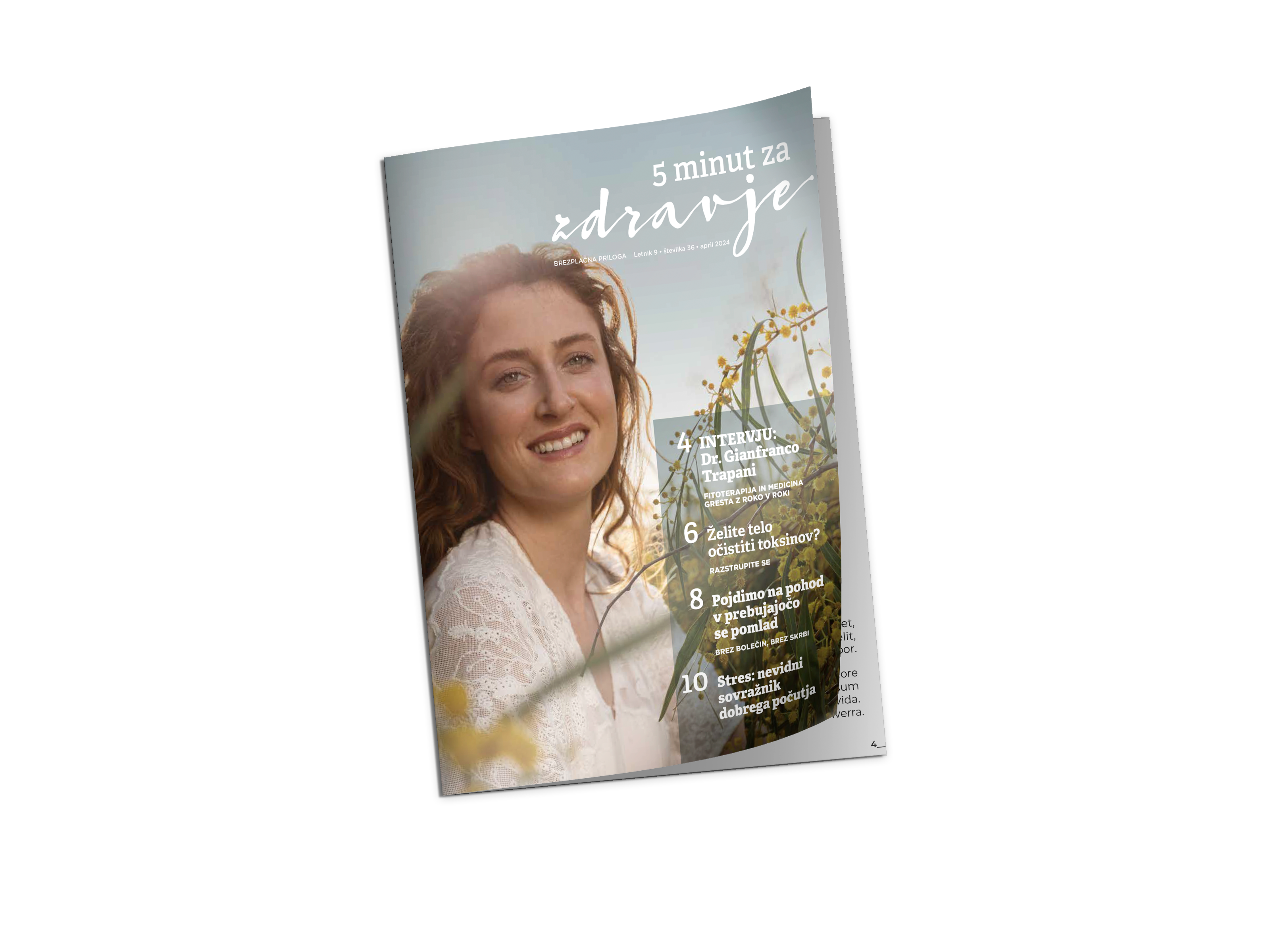 V aprilski izdaji revije 5 minut za zdravje vas čaka bogat nabor tem, ki vas bodo navdihnile in obogatile z znanjem. V ekskluzivnem intervjuju z dr. Gianfrancom Trapanijem raziskujemo, kako fitoterapija in tradicionalna medicina skupaj ustvarjata močno zavezništvo za naše zdravje. Razkrivamo učinkovite načine za razstrupljanje telesa, s praktičnimi nasveti, ki vam bodo pomagali prečistiti vaše telo. Prav tako smo za vas pripravili nekaj nasvetov, kako se odpraviti na spomladanske pohode brez bolečin in skrbi. Nazadnje, ne spreglejte našega poglobljenega pogleda na stres, tega nevidnega sovražnika in odkrijte strategije za upravljanje stresa in izboljšanje vašega počutja.