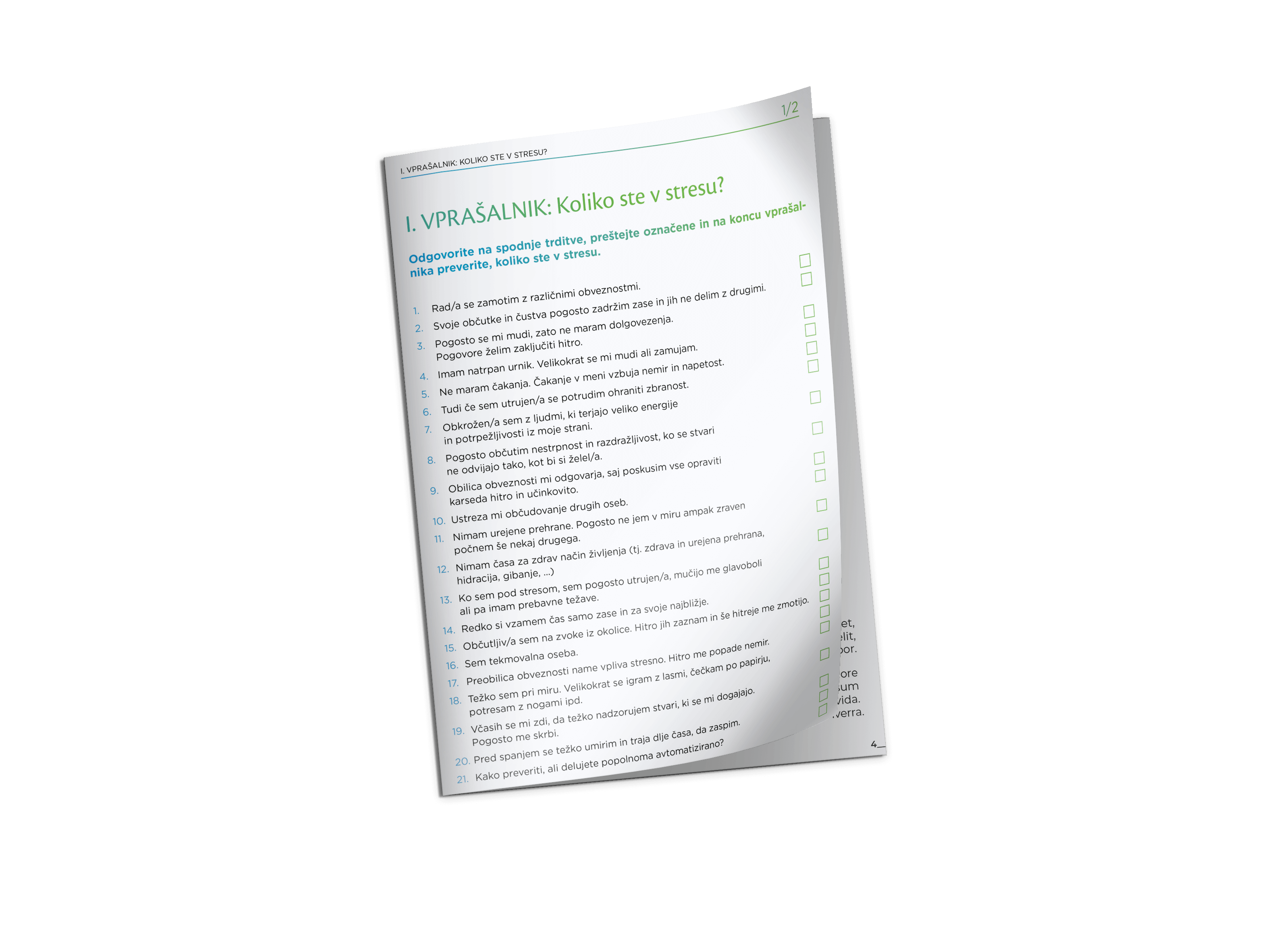 Vsakdanji izzivi, prepolni stresa, hitenja in neskončnih obveznosti, nemalokrat vodijo do nezdravih navad, ki vplivajo na naše zdravje in počutje. V ta namen smo za vas pripravili brezplačen e-vodič "Za dobro počutje", v katerem lahko odkrijete 5 ključnih stebrov do bolj uravnoteženega življenja.